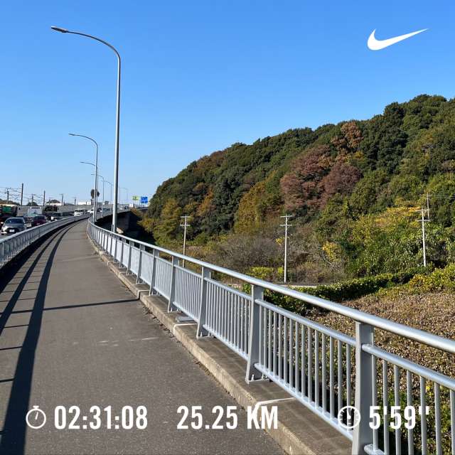 途中から目標を2時間半走に切り替え25km突破!今後はこれに慣れた後、3時間30kmを目標にして行きたいと思います。