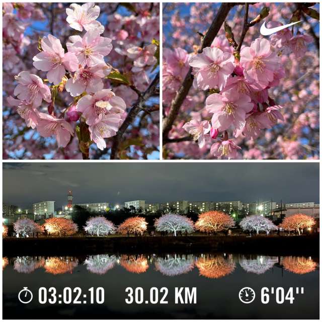 今日は朝ラン30km(ロング走)。昨日、ランニングコース上にある夜桜を見に行ったのですが、せっかくなので昼も見たいと走りに。