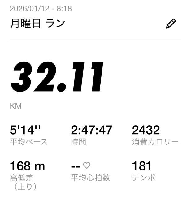 前半は思うようにスピードが上がらず、キロ5分半前後のペース。一方で、これまで課題だった20km以降の失速は見られず、今回は20kmを過ぎたあたりから自然とランナーズハイに入り、最後までキロ5分前後を維持できました。それでもまた20km過ぎで30代と思しき女性ランナーに抜かれましたが。笑